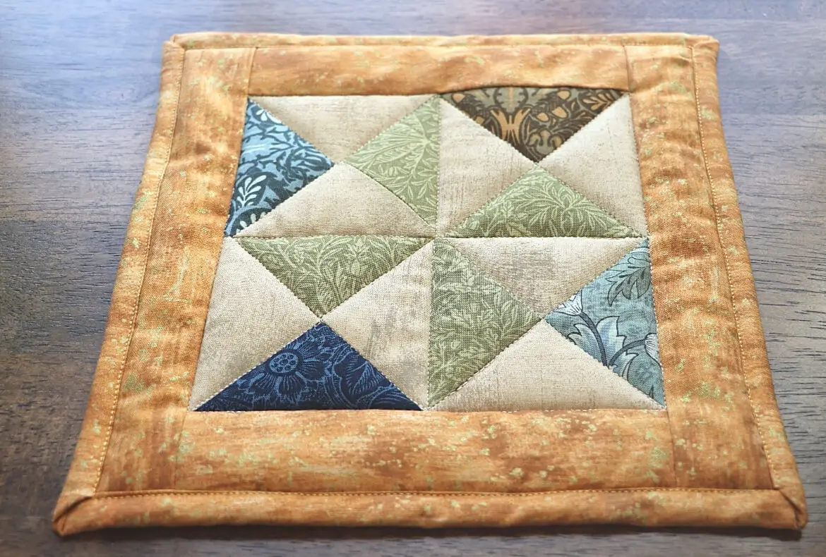 Quilt Binding With The Quilt Back featured image showing a quilted potholder example laying on wooden table